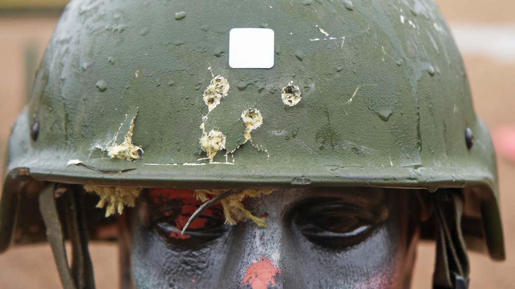 Мощь укороченной версии показали на штатном натовском бронешлеме. Трофейная каска канадского производства прибыла в «Калашников» из зоны СВО, из-под Соледара. Пять выстрелов — пять попаданий. ПЛК без труда пробил шлем — пули вошли в его «лобную часть» и задели «затылочную». Голову манекена пронзило насквозь.