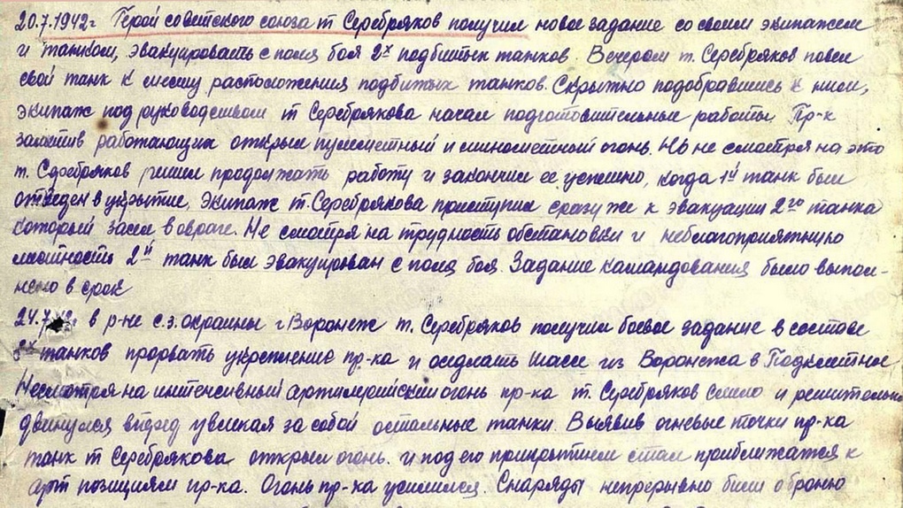 Его рота сражалась под Воронежем, где танкисты помогли эвакуировать мирных жителей из зоны боев. 24 июля 1942 года Серебряков получил приказ прорвать укрепления противника. Его танк был подбит и загорелся, но экипаж продолжил бой, вел огонь из горящей машины, выполняя задачу до конца.